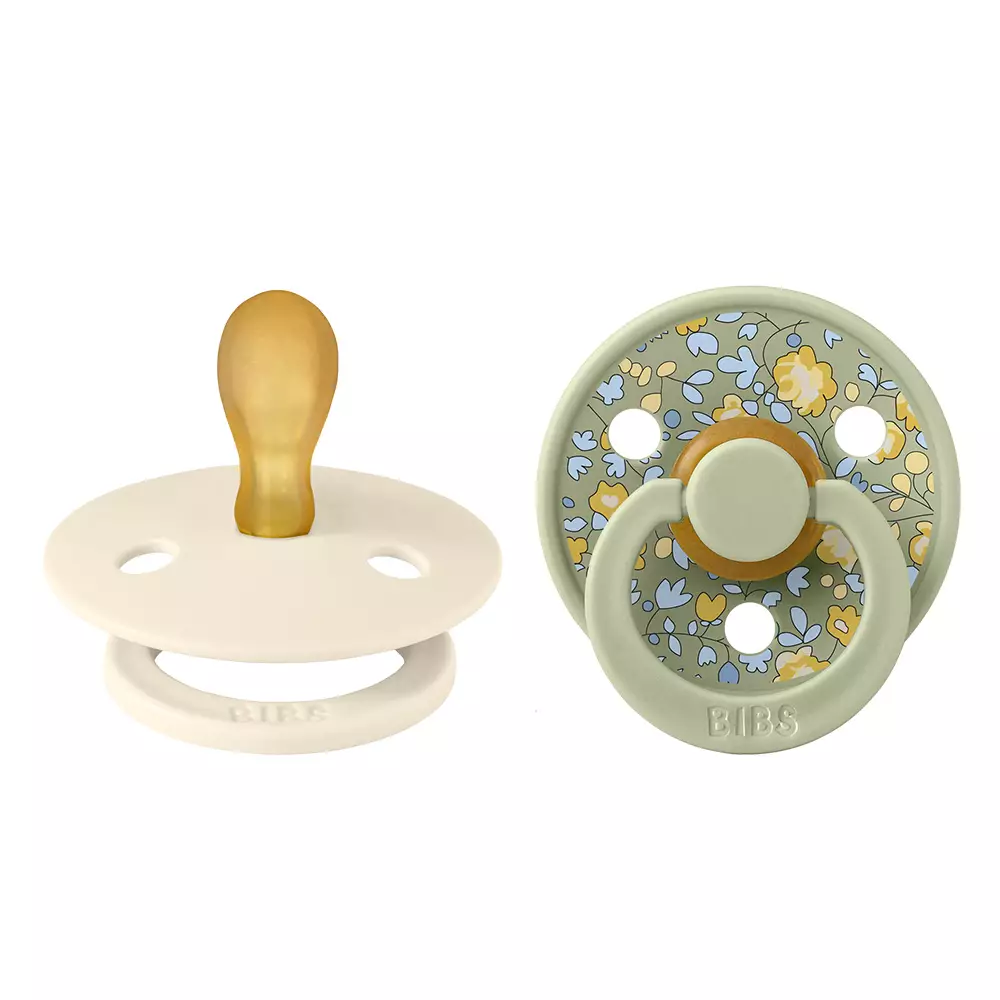 Bibs x Liberty luonnonkumitutti 2 kpl Size 1, symmetrical, Eloise Sage Mix paketissa on kaksi eriväristä tuttia, jotka soveltuvat vastasyntyneestä noin 6kk ikään asti. Bibs x Liberty kokoelman tutit ovat muotoiltu uudelleen ajattomilla runollisen kauniilla Liberty-printeillä. Bibs tutit rauhoittavat lasta ja auttavat kovan imemisen tarpeeseen.