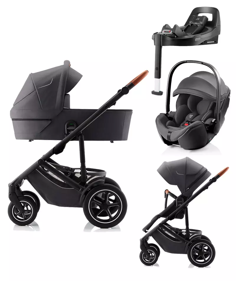 BRITAX Smile 5Z starttipaketti Midnight Grey, Baby-Safe PRO turvakaukalolla - todella laadukas paketti, joka sisältää kaiken mitä tarvitset vauvan kanssa liikkumiseen kävellen tai autolla. Helppo valinta uudelle vauvaperheelle!