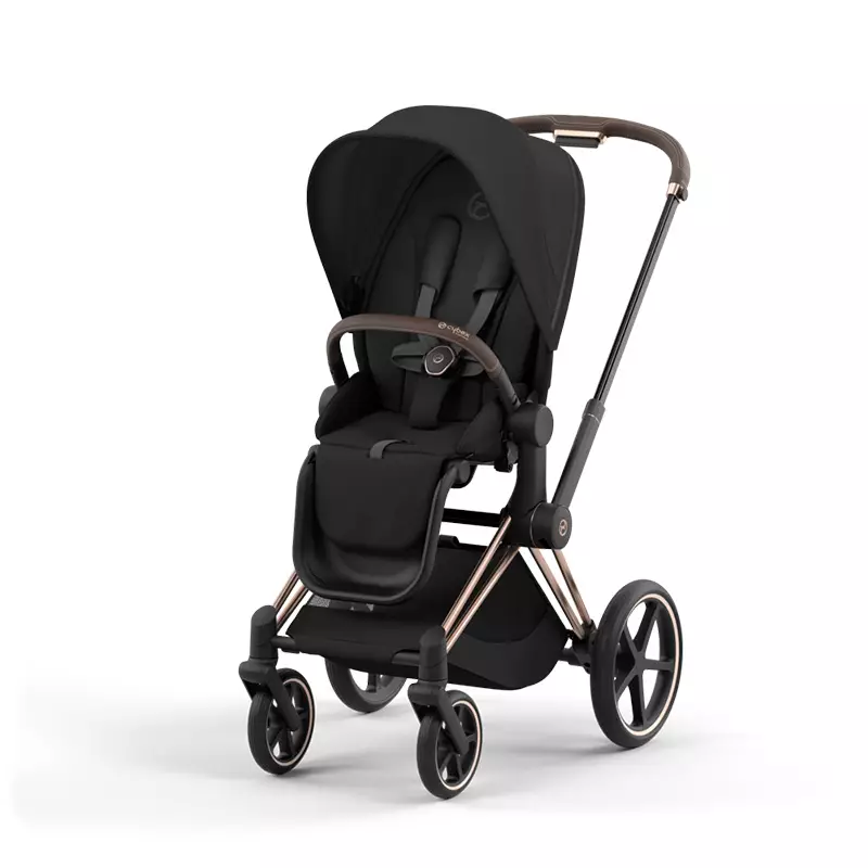 Cybex Priam 4 lastenrattaat Rosegold-rungolla. Cybex Priam rattailla liikkuminen on mukavaa ja helppoa. Rattaat ovat kompaktit ja liikkuminen ruuhkaisissa ostoskeskuksissa ja kahviloissa sujuu vaivatta. Lisäksi rattaat kasautuvat pieneen ja kevyeen pakettiin, jotka on helppo nostaa autoon. Yhden käden säädöt tekevät rattaista toimivat arjessa ja vakaa ja tasainen kyyti nelipyöräjousituksella takaa tasaisen kyydin eri maastoissa.