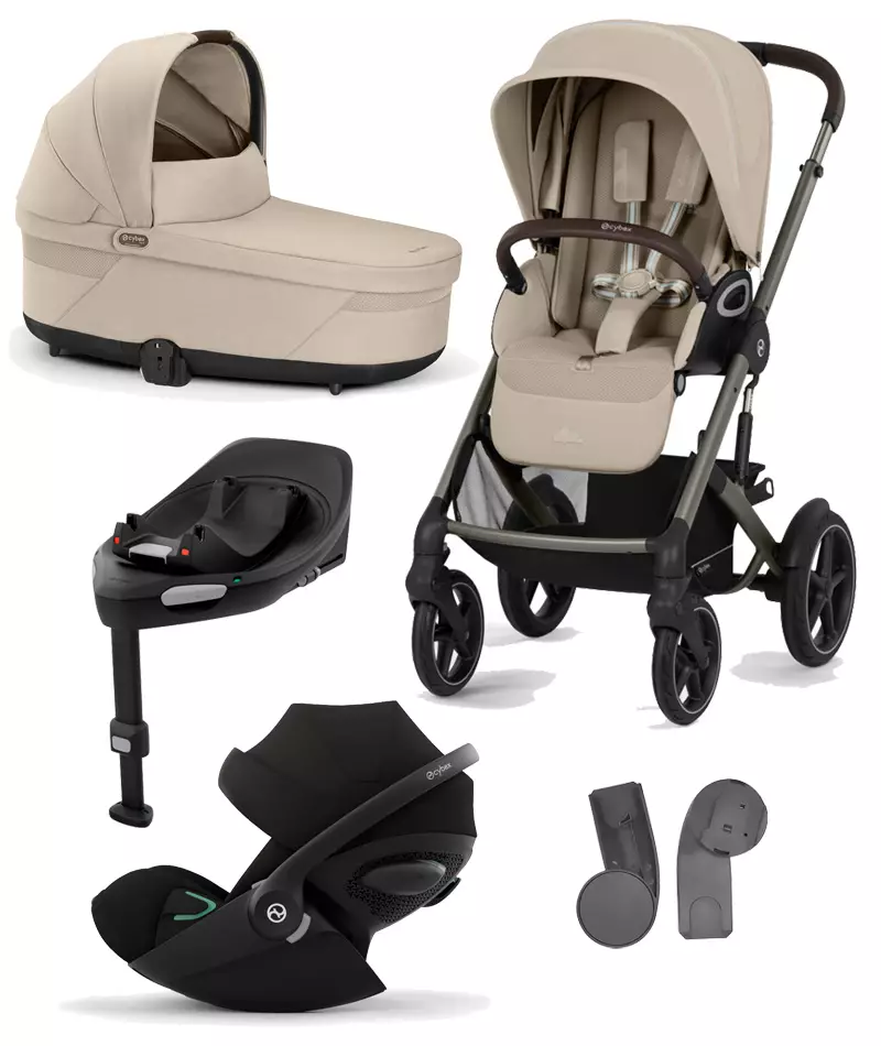 Paketissa on Cybex Cloud G turvakaukalo, joka on laadukas ja pitkäikäinen kaukalo - soveltuu 87 cm pituiselle lapselle saakka. Mukana myös Isofix-jalusta kaukalolle sekä adapterit, joilla kiinnität kaukalon vaunujen runkoon.