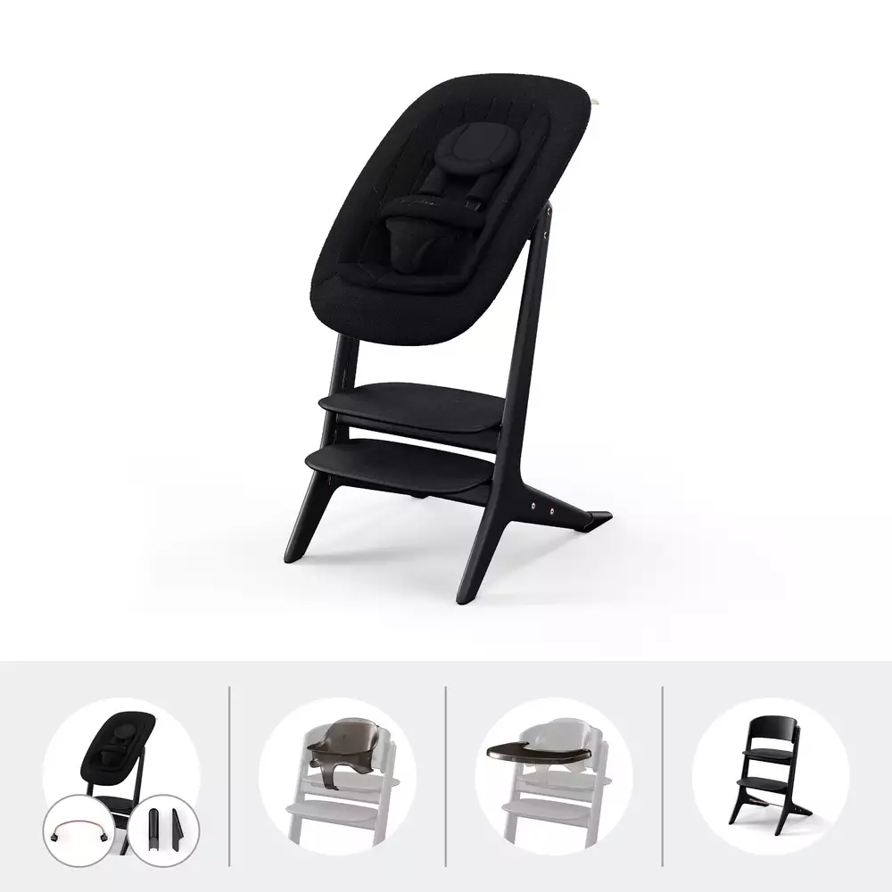 Starttipaketti Cybex Lemo Platinum 4in1 Black Wood sisältää syöttötuolin, bouncerin, Baby Setin ja tarjottimen. Värinä tyylikäs musta. Sopii käyttöön n. 6kk iästä alkaen. Lapsen mukana kasvava, kaunis ja kestävä syöttötuoli. Lemo Platinum -syöttötuoli edustaa nykyaikaista huonekalusuunnittelua, joka kestää sukupolvilta seuraaville. Tämä elegantti ja ajaton huonekalu on suunniteltu mukautumaan erilaisiin käyttötarpeisiin koko elämän ajan.