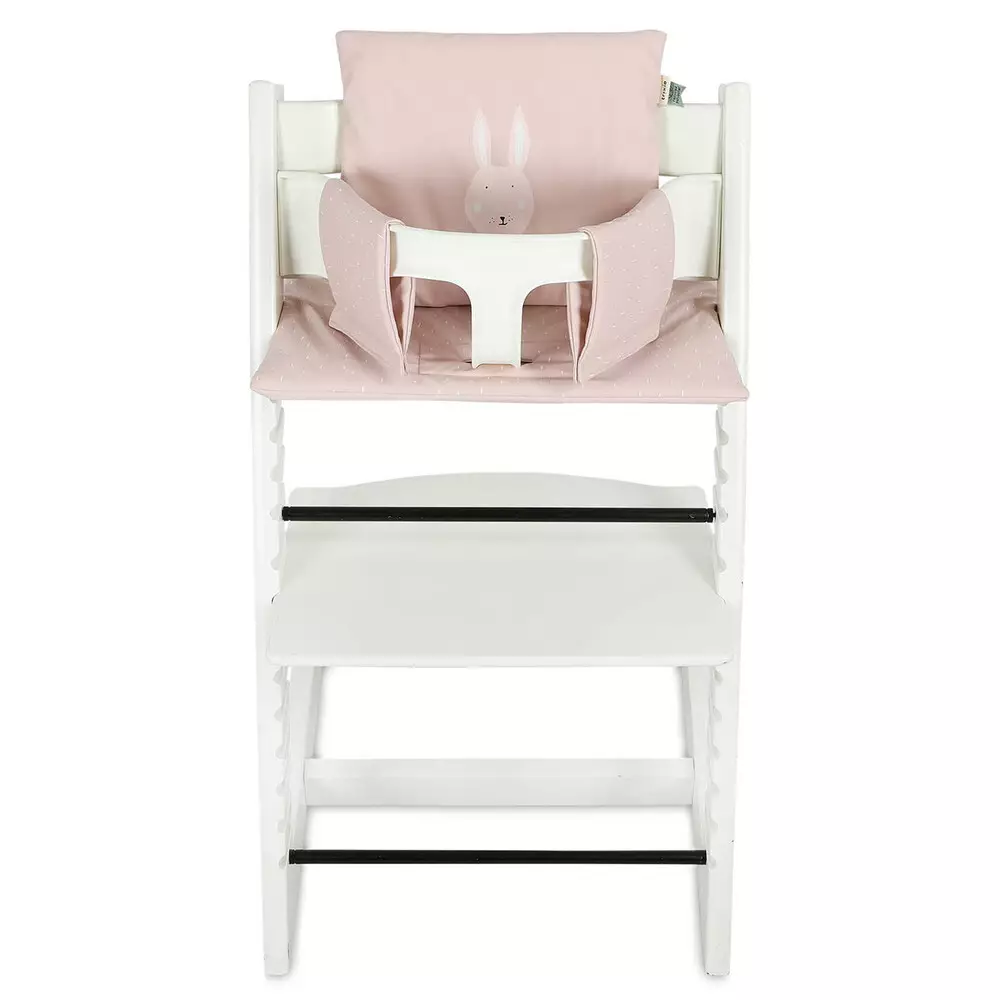 Trixie syöttötuolin istuinpehmuste. Vaaleanpunainen pupu istuinpehmuste on vedenpitävä ja helppo pyyhkiä puhtaaksi.