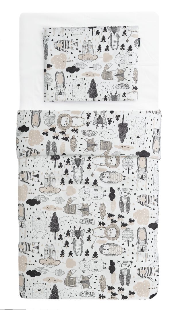 Ihanan suloiset kaverit seikkailevat metsässä, ja tuovat vauvalle mukavat unet. Pehmeä puuvilla tuntuu mukavan pehmeältä vauvan herkkää ihoa vasten. Hempeät värit tuovat mieleen maitokaakaon vaahtokarkeilla. Familon pussilakanasetti on kehitelty yhteistyössä Allergia,- iho ja astmaliiton kanssa.
