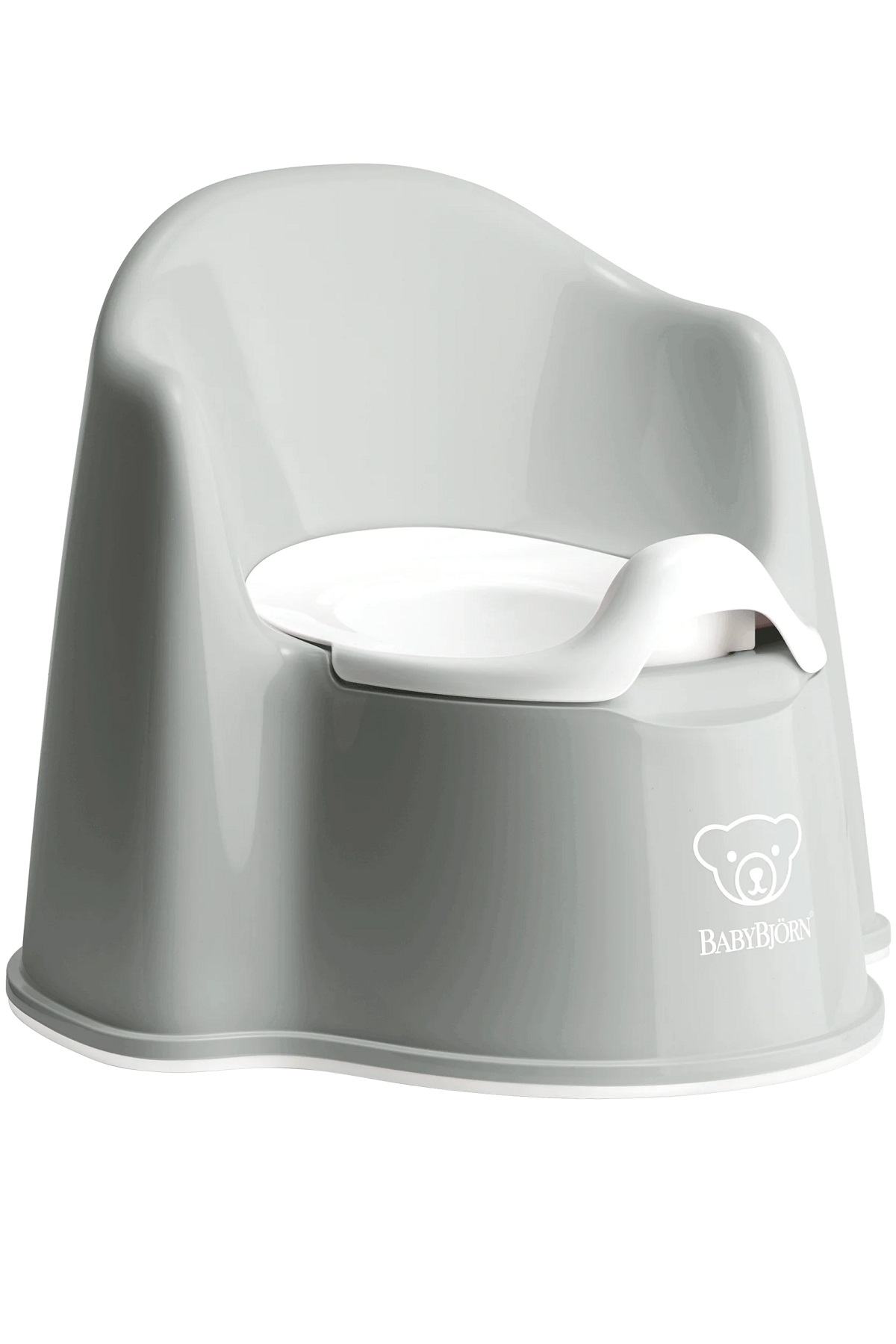 Baby Björn pottatuoli Potty Chair Grey-White  - parasta istumamukavuutta! Baby Björn pottatuolissa on mukava istua, sillä siinä on ergonominen muotoilu ja pehmeät muodot. Baby Björn auttaa lasta siirtymään vaippavaiheesta potalle. Pottatuoli pysyy vakaasti paikallaan lattialla alareunan kumilistan ansiosta.