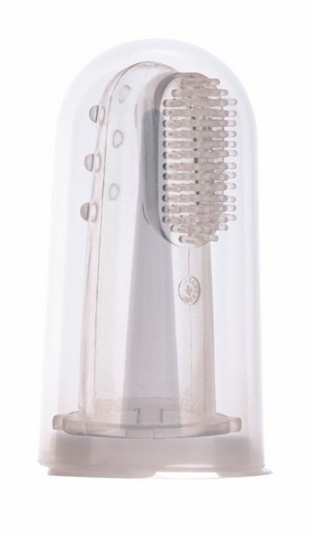 Aseta harja sormeen ja harjaa hellästi vauvan hampaita tai ikeniä hammastahnalla tai ilman. Mukana säilytyskotelo.