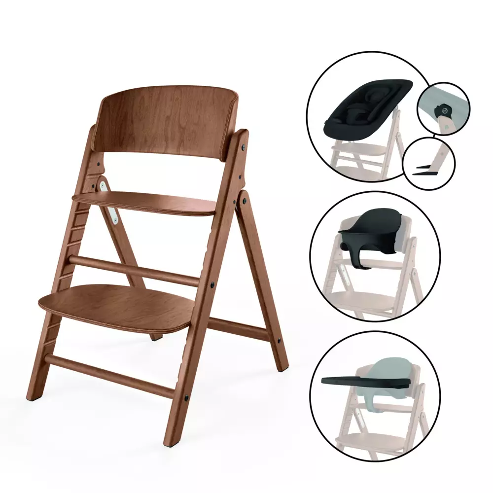 Cybex CLICK & FOLD syöttötuoli 4in1 All Natural Dark sisältää syöttötuolin, bouncerin, Baby Setin sekä tarjottimen. Sopii käyttöön n. 6kk iästä alkaen.
