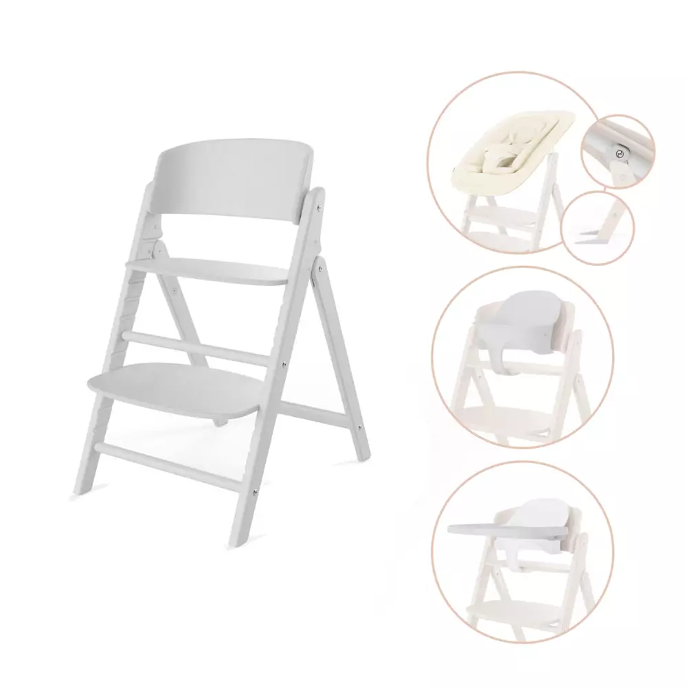 Cybex CLICK & FOLD syöttötuoli 4in1 All White sisältää syöttötuolin, bouncerin, Baby Setin sekä tarjottimen värissä All White. Sopii käyttöön n. 6kk iästä alkaen.