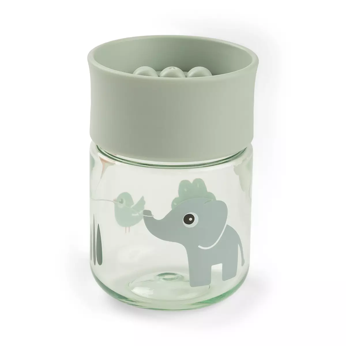 Done by Deer Learning cup 360 Playground Green on täydellinen muki harjoittelemaan hörppäämistä mukista itsenäisesti. 360° juomreuna mahdollistaa siemailun miltä tahansa reunalta ja tukee luonnollisia juomistaitoja. Käännettävä kansi säätää nesteen virtausta lapsen juomisvaiheen mukaan.