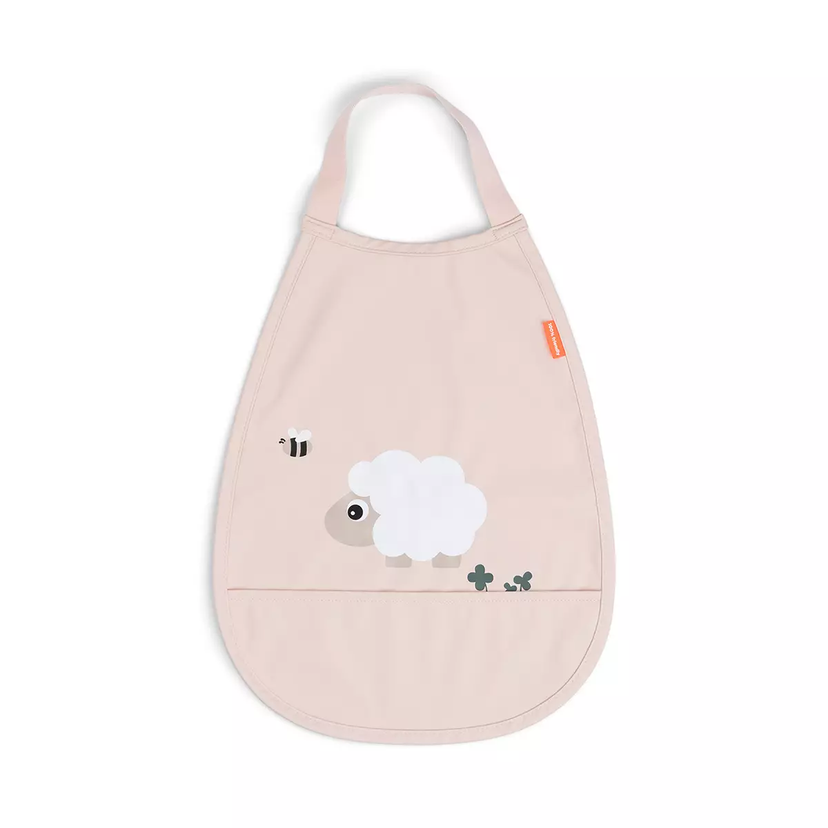 Done By Deer ruokalappu pull-over Tiny Farm Powder on taskullinen ruokalappu, joka tekee ruokailutilanteesta vähemmän sotkuista. Ruokalapussa on vedenpitävä pinnoite ja se on helppo pyyhkiä puhtaaksi tai pestä pesukoneessa. Ruokalapun tasku kerää ohi menneet ruoat. Joustavan niskhihnan avulla lapsi voi laittaa ja ottaa ruokalapun pois helposti itse - rohkaisee lasta olemaan itsenäisempi.