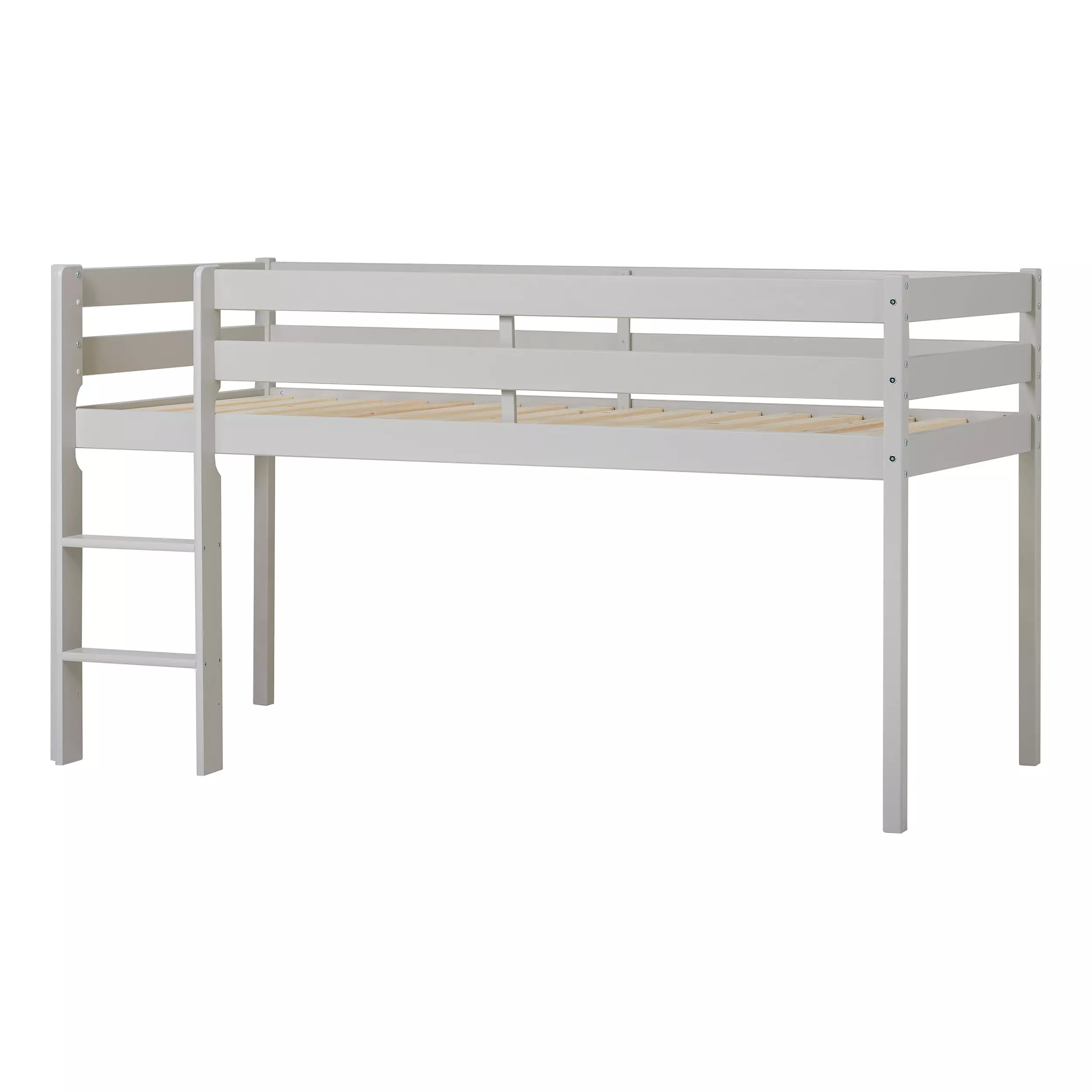 Puolikorkea sänkyMateriaali: FSC® (FSC-C109484)-sertifioitu mäntyPainoraja: 60kgMitat: 206x114x101cmPatjan turvallinen maksimikorkeus: 9cmKorkeus sängyn alla: 72cmValmistusmaa: Latvia