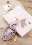 Hoitoalusta Done By Deer Playground Powder on hoitoalusta suloisen norsun kuvalla. Hoitoalusta antaa vauvalle pehmeän alustan vaipanvaihdon ajaksi, ja korkeat laidat estävät vauvaa kierähtämästä pois hoitopöydältä.