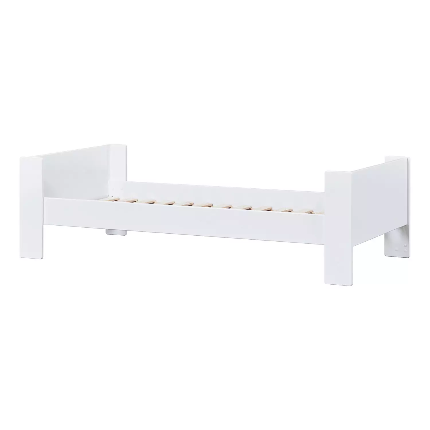 Hoppekids PURE -juniorisänky ajattomassa ja klassisessa valkoisessa värissä. Tämä junior-sänky on suunniteltu mukavuus ja turvallisuus mielessä. Sängyn runsas koko 90x200cm tarjoaa tilaa kasvavalle lapselle ja riittävästi liikkumavapautta hyvää yöunta varten.