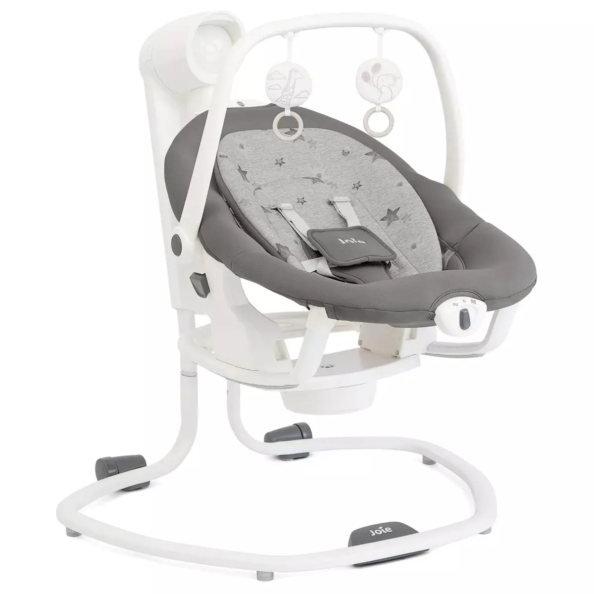 Joie Serina 2in1 vauvakeinu & sitteri Cosmo Grey on kaunis ja käytännöllinen vauvakeinu ja samalla voit käyttää tätä myös sitterin lailla. Serina 2in1 sitteriä voi käyttää kuten tavallista sitteriä tai sitten se voidaan kiinnittää tukevasti jalkaan kiinni ja sitteri muuntuu keinuksi. Joie Serina 2in1 vauvakeinu on helppokäyttöinen ja siinä on monta erilaista toimintoa mm. 5 erilaista kehtolaulua, luontoääniä ja tietysti värinä- ja keinutoiminto. Vauvakeinussa on myös yövalo.