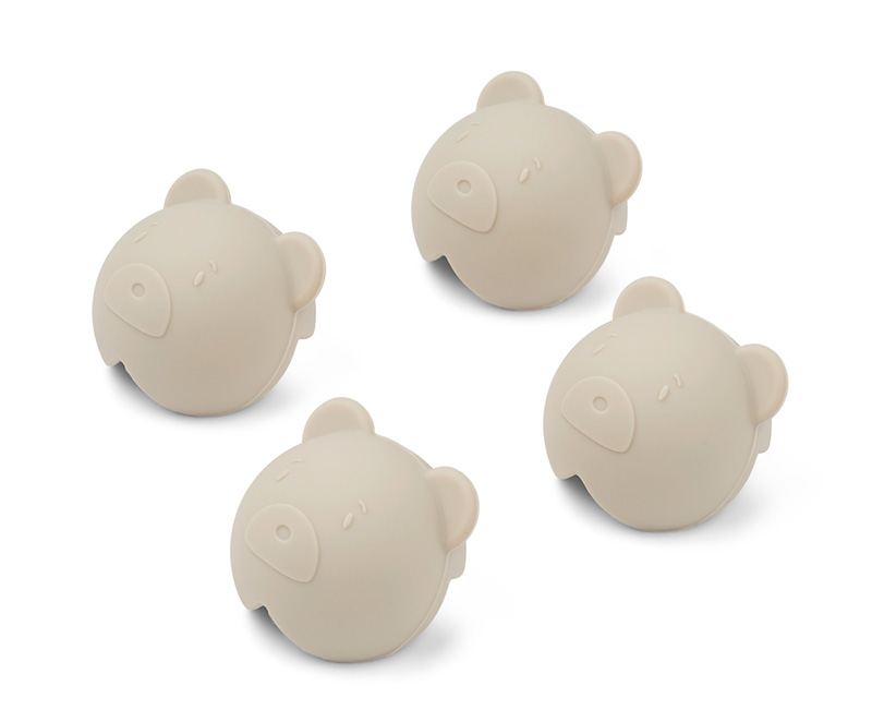 Liewood Abraham kulmasuoja 4-pack Sandy on karhun muotoinen kulmasuoja, joka on valmistettu pehmeästä ja kestävästä silikonista. Kulmasuojat suojaavat lapsia kodin teräviltä kulmilta. Tarratyynyt varmistavat, että suojus pysyy hyvin paikallaan ja pehmeä muotoilu tekee siitä helpon sijoittaa sulavasti kodin eri paikkoihin.