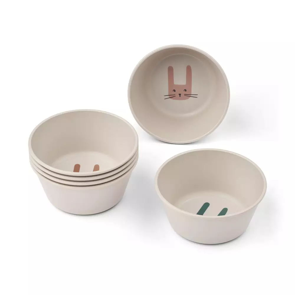 Liewood Cees kulho 6-pack Bunny sandy on mainio valinta lapsen ruokailuun. Kulhot on valmistettu 75% kierrätetystä PET:stä ja ne ovat kevyet ja kestävät jokapäiväisiin ruokailuhetkiin, piknikille tai syntymäpäiväjuhliin.