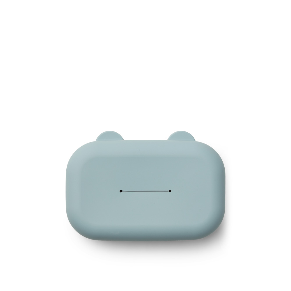 Liewood Emi silikoninen rasia kosteuspyyhkeille kauniissa sinisessä värissä. Rasiassa suloiset nallenkorvat.