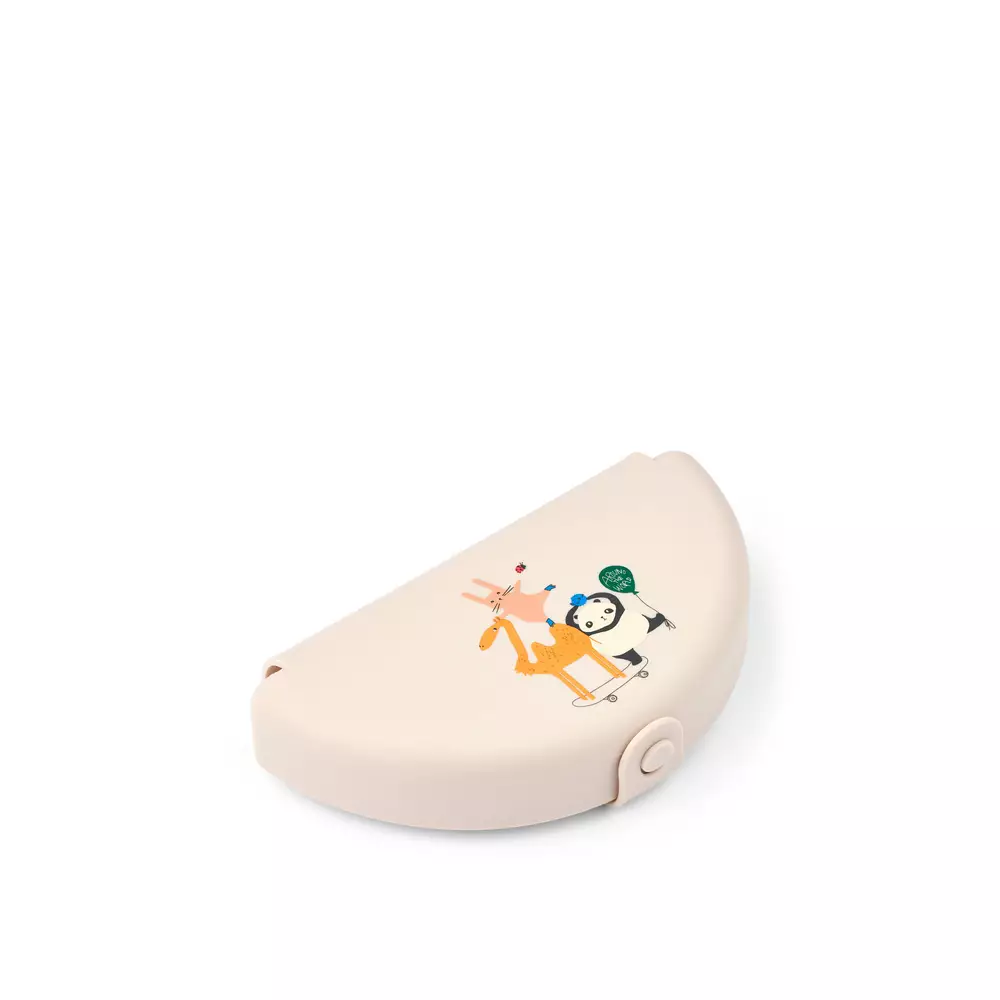 Joustavasta silikonista valmistettu Liewood eväsrasia on helppo avata ja taittaa kiinni. Sisällä kaksi lokeroa eväille.