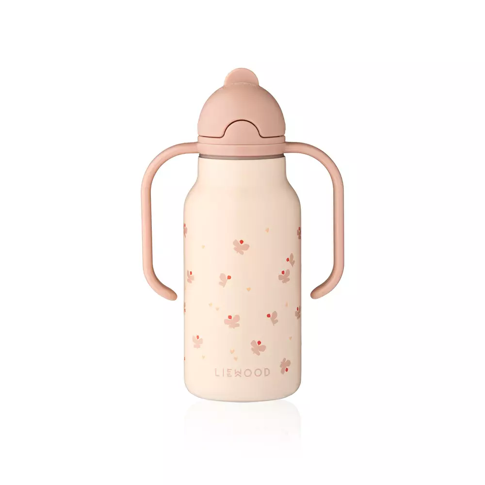Liewood juomapullo Kimmie 250 ml Mini butterfly/Apple blossom on teräksinen termospullo kahvoilla, joka pitää juoman lämpimänä tai kylmänä. Erittäin kätevä termospullo kotiin, päiväkotiin tai retkille. Pullossa on kätevät kahvat, jotka on kiinnitetty kanteen. Pullossa on esiin käännettävä pilli. Juomapullon kansi on yhteensopiva kaikkiin Falk-pulloihin.