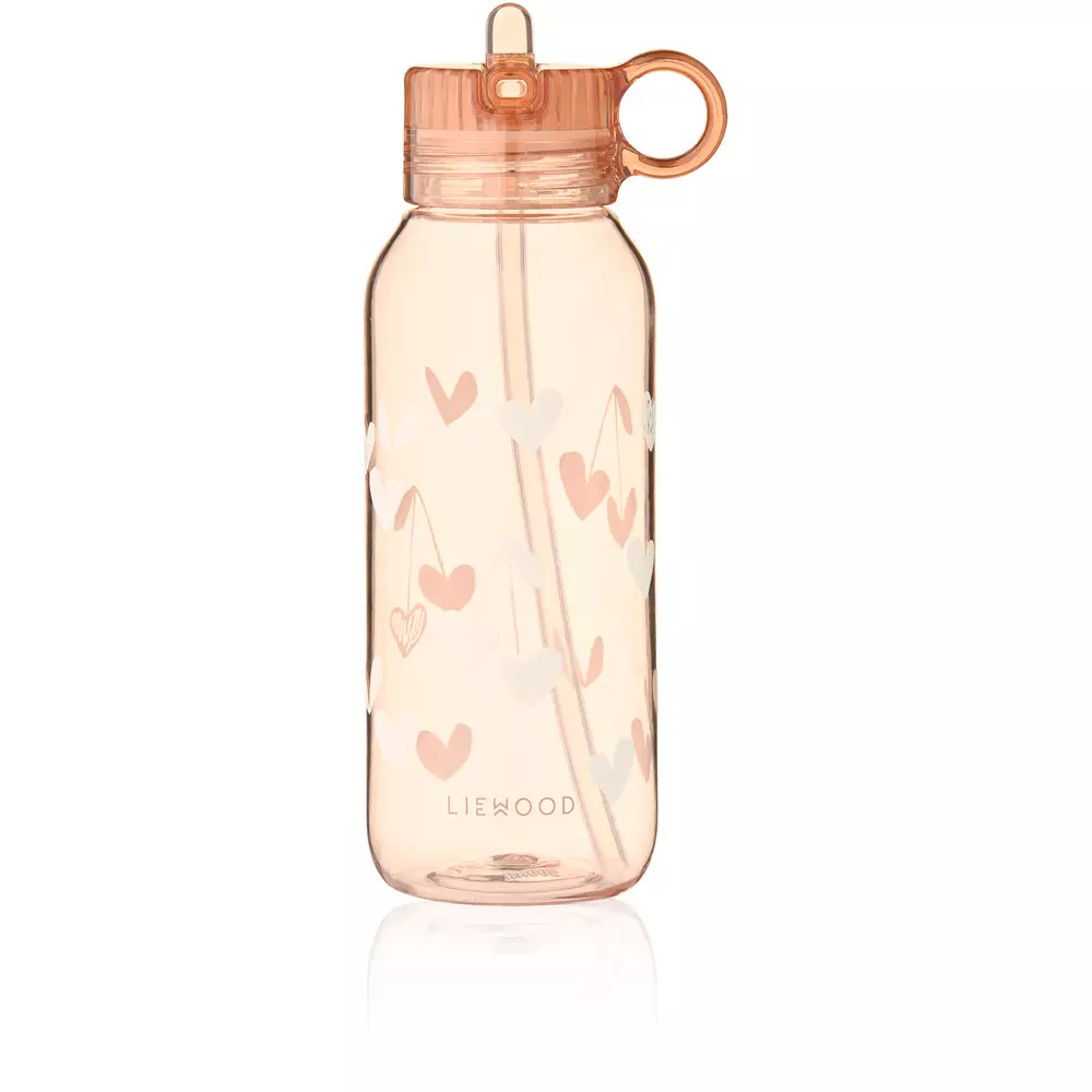 Liewood juomapullo Yang 500 ml Sweethearts/Pale tuscany on erittäin kestävä ja kevyt tritanipullo. Esiin taitettava pilli on helppo käyttää ja suljettuna vuotamaton. Pullossa on kahva, josta saat pullon kiinni reppuun. Särkymätön ja kevyt juomapullo sopii lapselle jokapäiväiseen käyttöön ja se on helppo sujauttaa mukaan koulureppuun. Astianpesukoneen kestävä.