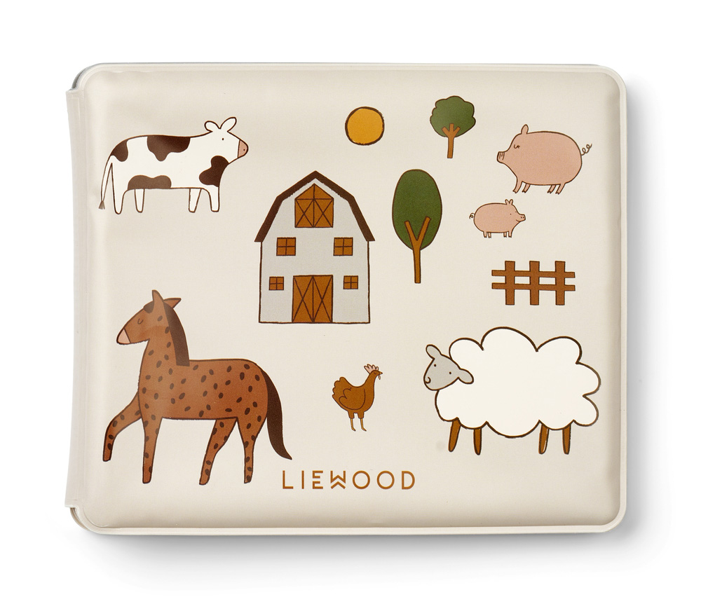 Liewood kylpykirja Waylon Farm magic Water book, Sandy - tee kylpyhetkistä erityisen hauskoja vedenpitävällä kylpykirjalla! Upota kirja veteen ja anna lapsesi löytää piilotettuja olentoja ja kuvia valkoisten sivujen alta.