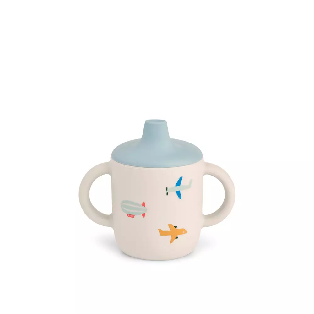Liewood Neil nokkamuki kahvoilla Aviator Ecru on 100% silikonia. Nokkamuki on helppo pitää kädessä ja silikonisen pinnan ansiosta se ei pääse liukumaan pöydän pinnalla.