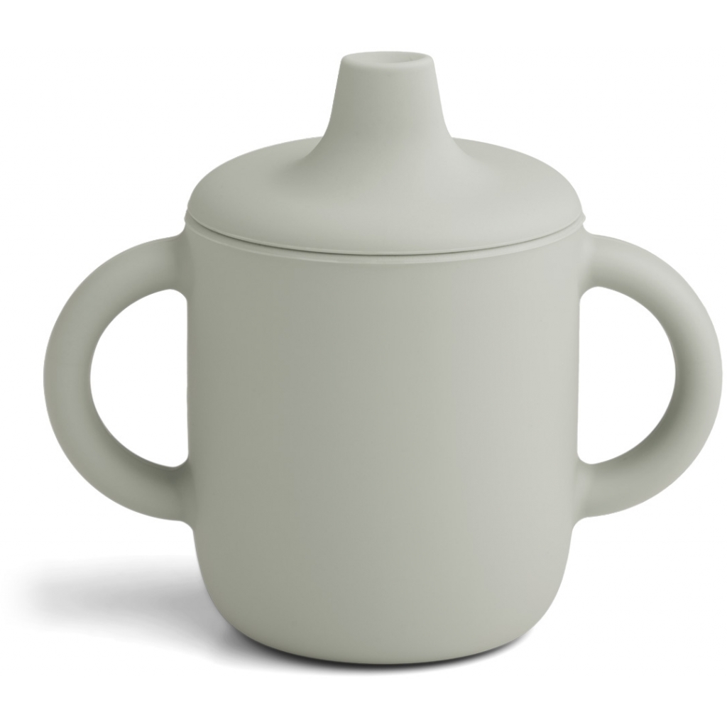 Liewood Neil nokkamuki kahvoilla Dove Blue on 100% silikonia. Nokkamuki on helppo pitää kädessä ja silikonisen pinnan ansiosta se ei pääse liukumaan pöydän pinnalla. Lapsen on helppo harjoitella juomaan nokkamukista.