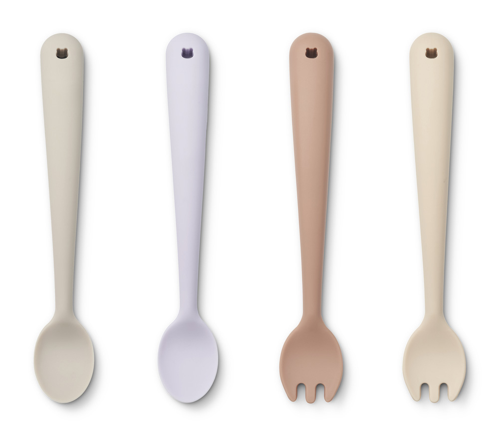 Liewood Shea aterinsetti silikonia apple blossom multi mix 4 -pack ovat juuri oiken malliset ensiaterimet lapsellesi. Pitkävartiset vauvan syöttämiseen soveltuvat ensilusikat ja -haarukat sopii niin aamupaloille kuin lounasruoallekin. Aterimet ovat mukavan pehmeää silikonia ja ovat miellyttävän pehmeän tuntuiset pikkuisen suuhun.