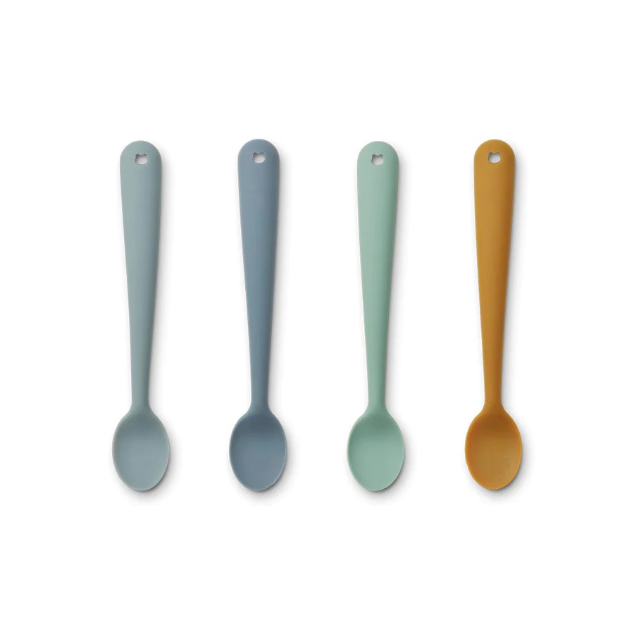 Liewood Siv silikonilusikka 4-pack Blue multi mix ovat juuri oiken malliset ensilusikat vauvallesi. Pitkävartinen vauvan syöttämiseen soveltuva ensilusikka.