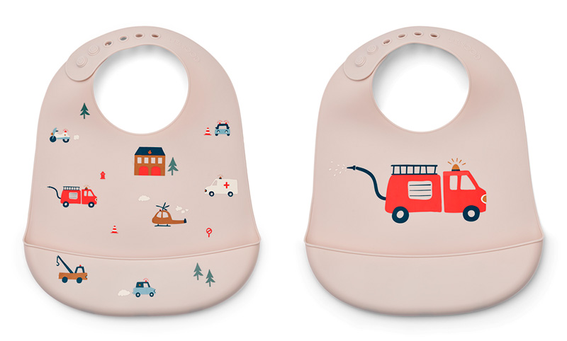 Liewood Tilda ruokalappu 2-pack emergency vehicle/sandy on kaunis ja käytännöllinen ruokalappu, joka kerää talteen kaikki lattialle tippuilevat muruset. Ruokalappuja on kaksi erilaista ja ne ovat helposti puhdistettavaa silikonia.