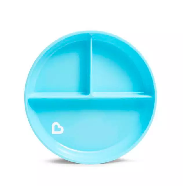 Munchkin imukuppilautanen Suction Plate lautasessa on jämäkkä imukuppi pohjassa, joka kiinnittyy tasaisille pinnoille. Lapsen on helppo harjoitella itsenäistä ruokailemista, kun lautanen ei karkaa alta pois eikä se pääse myöskään kaatumaan tai lentämään lattialle.