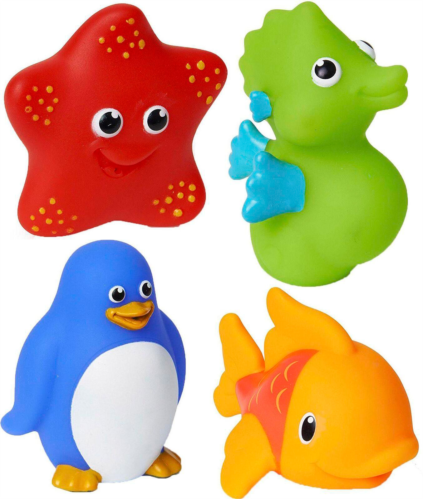 Hauskat Munchkin kylpylelut lapselle. Pakkauksessa neljä merieläin kylpylelua.