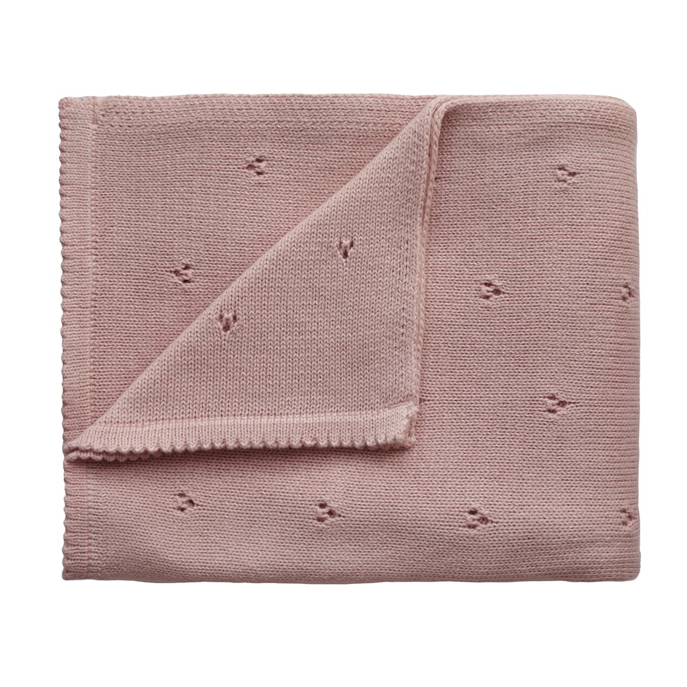 Mushie vauvan neulehuopa luomupuuvillaa, Pointelle Blush värissä on kaunis peitto vauvalle sänkyyn tai kehtoon.