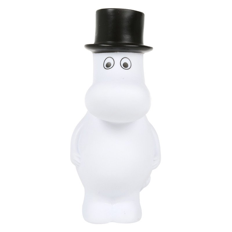 Muumi kylpylelu Martinex Muumipappa on iloinen kaveri kylvyssä ja muissa vesileikeissä. Muumipappa tutussa mustassa silinterihatussaan.