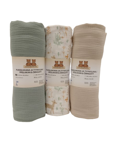 Pussilakanasetti on kotimainen tuote ja se on valmistettu Sastamalassa Pirkanmaalla.