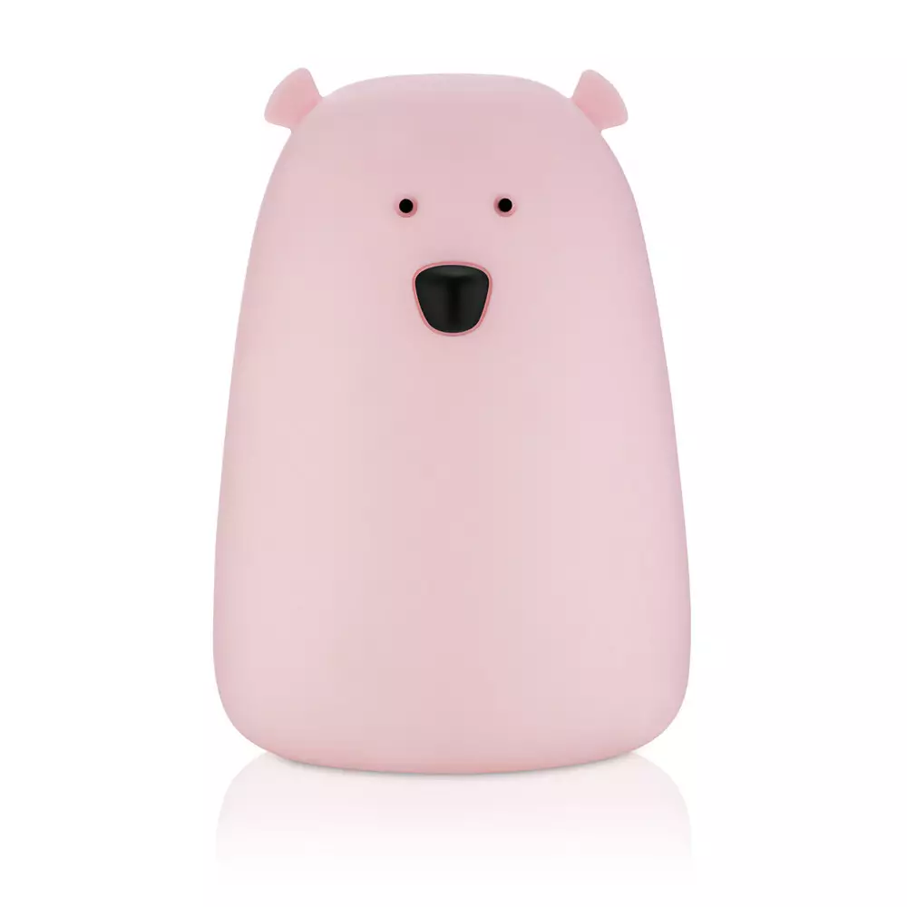 Rabbit & Friends yövalo Bear Pink on ihana yövalo pimeneviin iltoihin. Nallen muotoinen yövalo valaisee ympäristönsä lämpimällä ja pehmeällä valolla, joka luo rauhallisen tunnelman lastenhuoneeseen. Yövalossa on pehmeä silikoninen pinta, joka muuttaa muotoaan puristaessa sitä ja palautuu pian taas normaaliin muotoonsa. Taputtamalla karhua päästä, voit säätää valon voimakkuutta.