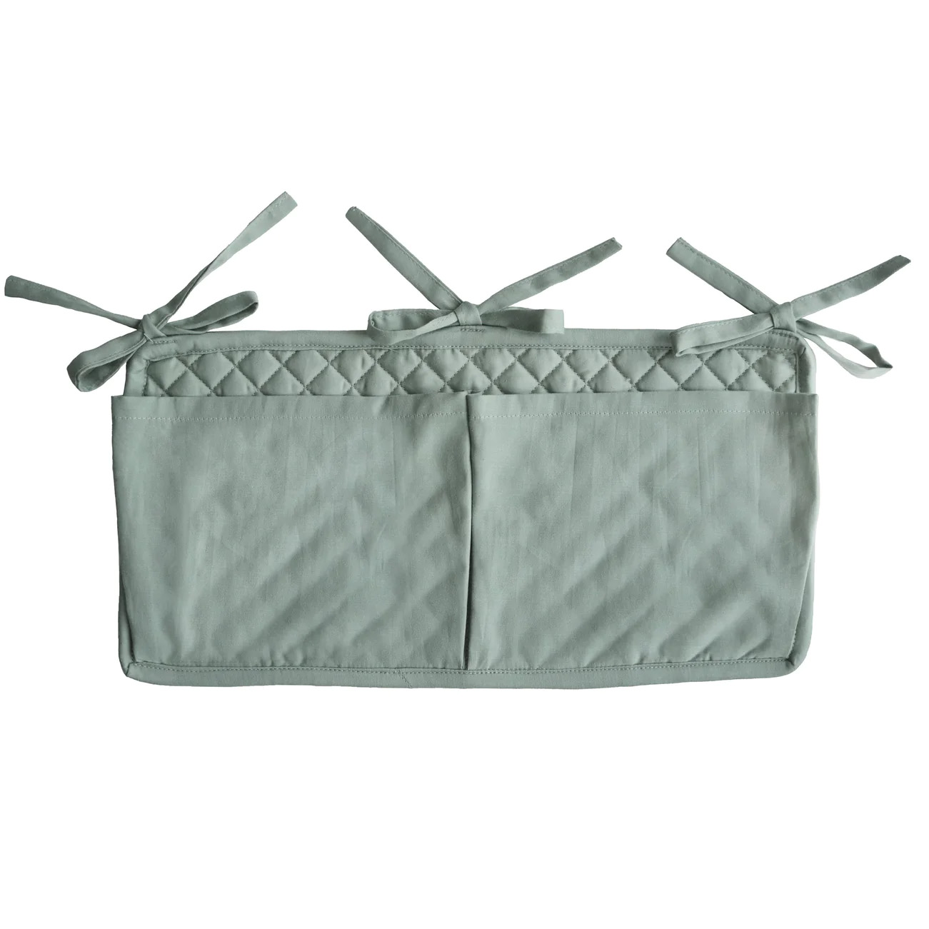 Säilytystaskut pinnasänkyyn Mushie Roman Green pitää vauvan hoitotarvikkeet järjestyksessä ja samalla myös esillä kauniissa säilytystaskussa. Säilytystaskut on helppo kiinnittää pinnasänkyyn tai muihin huonekaluihin kolmella narulla.