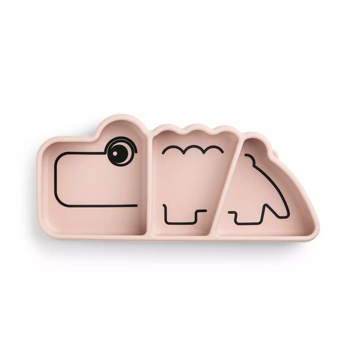 Silikonilautanen imukupilla Done By Deer Croco Powder on suloinen lautanen lapselle. Kaunis vaaleanpunainen Crocon muotoinen silikonilautanen on käytännöllinen ja kiva lapselle ruokailuhetkiin. Lautanen on jaettu kolmeen osaan ja voit laittaa siihen erilaisia ruokia. Lapsen on helppo ottaa siitä itse ruokaa ja harjoitella lusikan käyttöä. Done By Deer silikonilautasen reunat ovat tarpeeksi korkeat, kun lapsi alkaa itse harjoitella syömistä lusikan kanssa ja ruoka ei pääse tippumaan pöydälle. Imukupin ansiosta lautanen pysyy kiinni pöydässä eikä tipu lattialle.