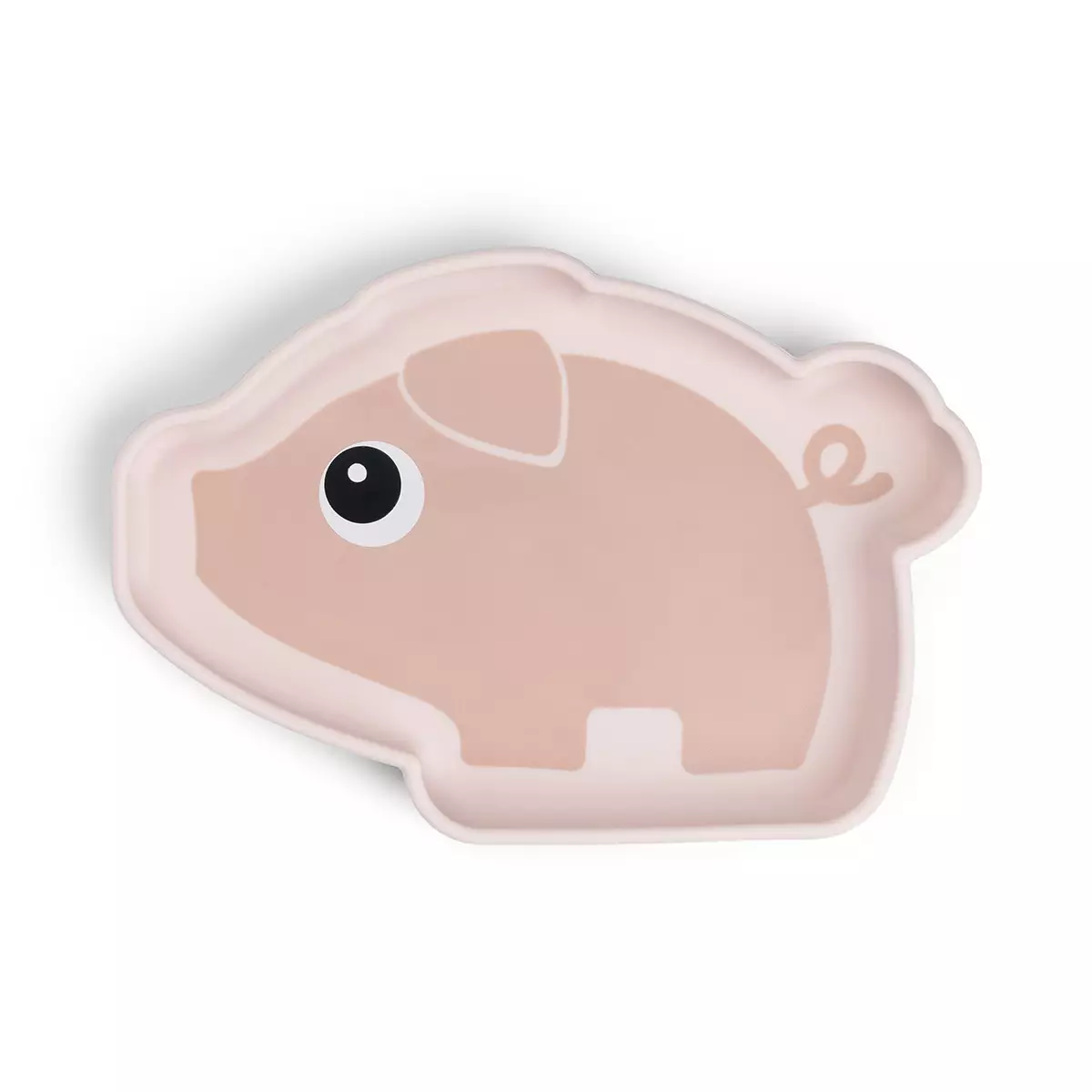 Silikonilautanen imukupilla Done By Deer Pigee Powder on hauska vaaleanpunainen silikonilautanen, joka varmasti pysyy kiinni pöydässä.