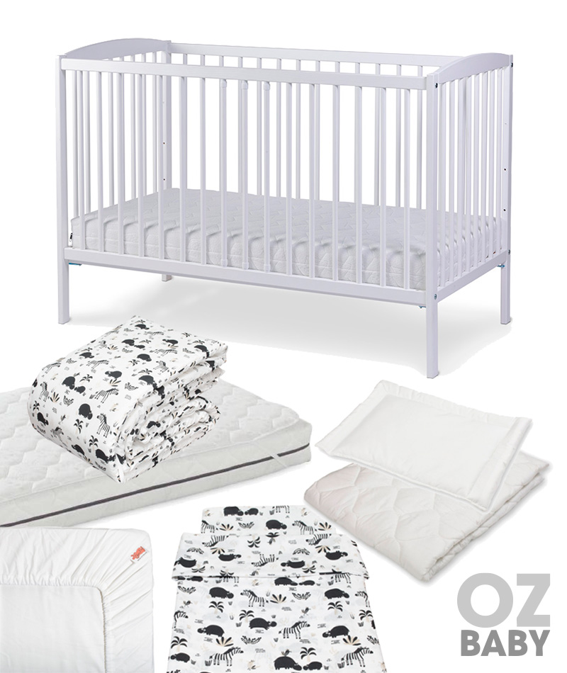 Starttipaketti NordBaby Lassio 2in1 White, kotimaisilla Hippo-tekstiileillä. Starttipaketti sisältää valkoisen NordBaby pinnasängyn sekä Anne & Mikael Hippo -petivaatteet sänkyyn.
