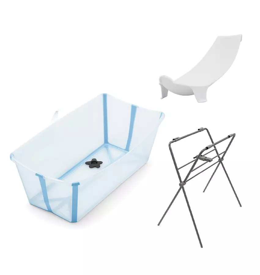 Stokke Flexi Bath starttipaketti 3 in 1 Glacier Blue - kylpyamme, vauvan kylpytuki ja kylpyammeen jalat samassa paketissa. Värinä Glacier Blue.