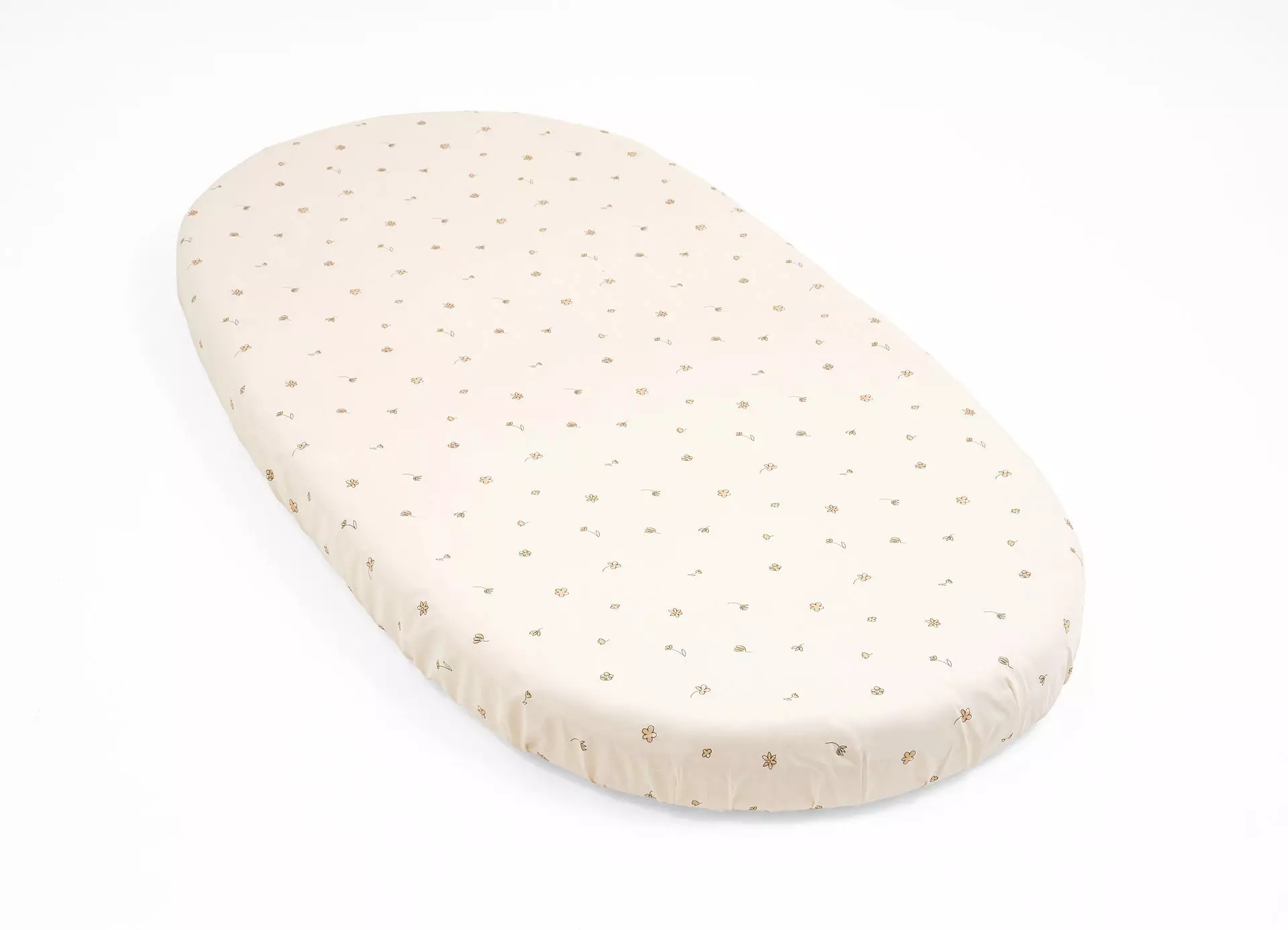 Stokke muotolakana Sleepi sänkyyn V3 Flower Ecru OCS - aluslakana, joka sopii täydellisesti ovaalin muotoisen patjan ympärille.