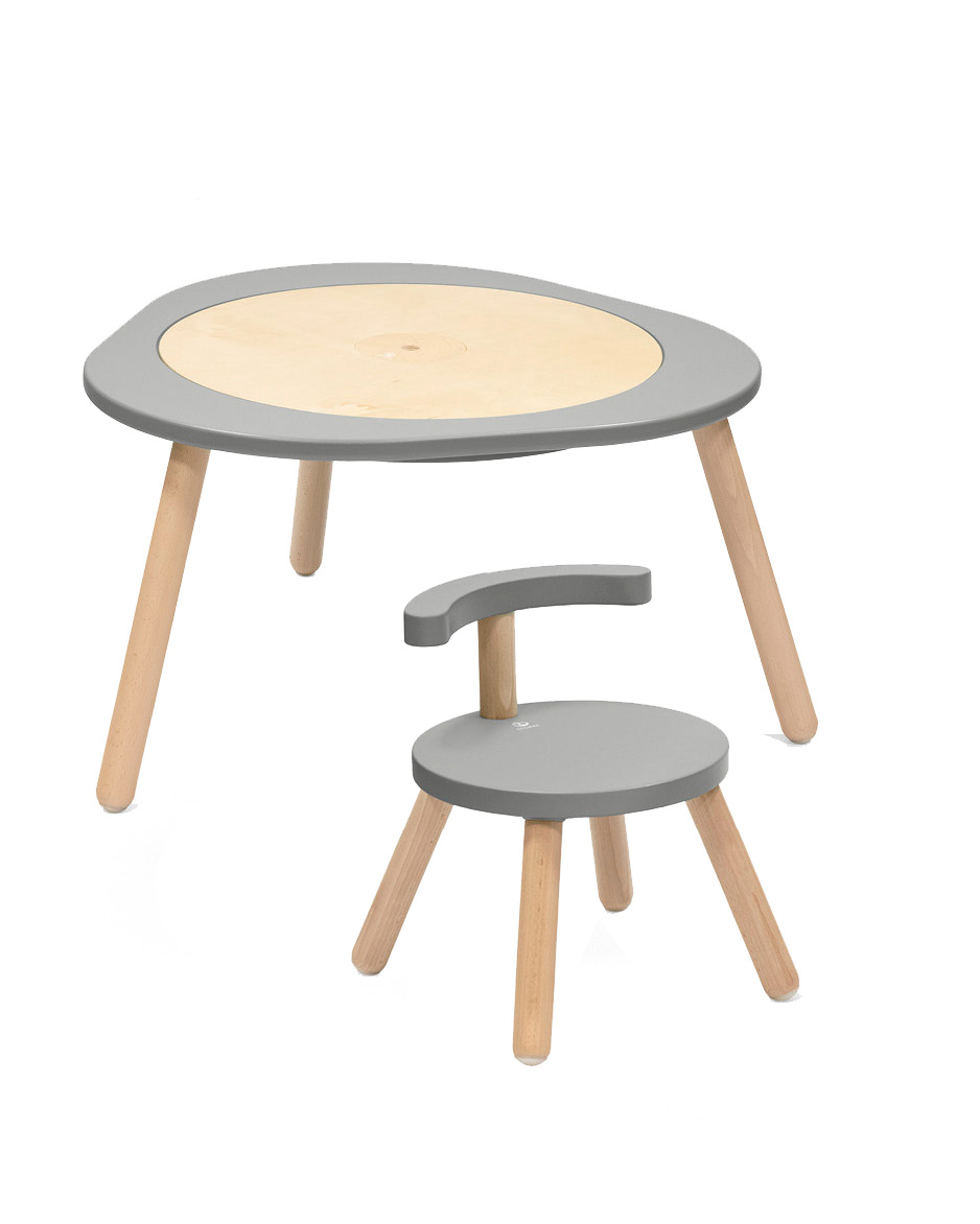Stokke MuTable V2 lasten pöytä ja tuoli Storm Grey setissä on MuTable leikkipöytä ja tuoli samassa paketissa värissä Storm Grey.