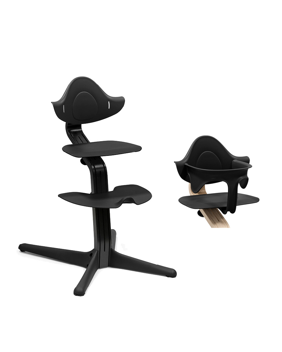 Stokke Nomi Chair starttipaketti 2 in 1 Black/Black sisältää Stokke Nomi syöttötuolin ja Baby Setin, molemmat värissä Black.