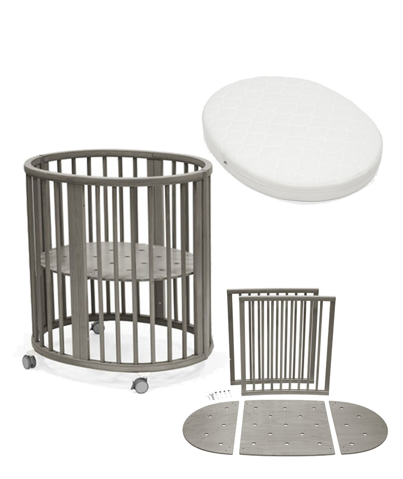 Stokke Sleepi Mini starttipaketti 3 in 1 Hazy Grey V3 sisältää Stokken Sleepi Mini V3 pinnasängyn, patjan sekä Extension lisäpalat sängyn kasvattamiseksi. Kaunis ovaalinmuotoinen pinnasänky vauvanhuoneeseen. Sänkyä on helppo liikutella äänettömästi paikasta toiseen renkaiden avulla.