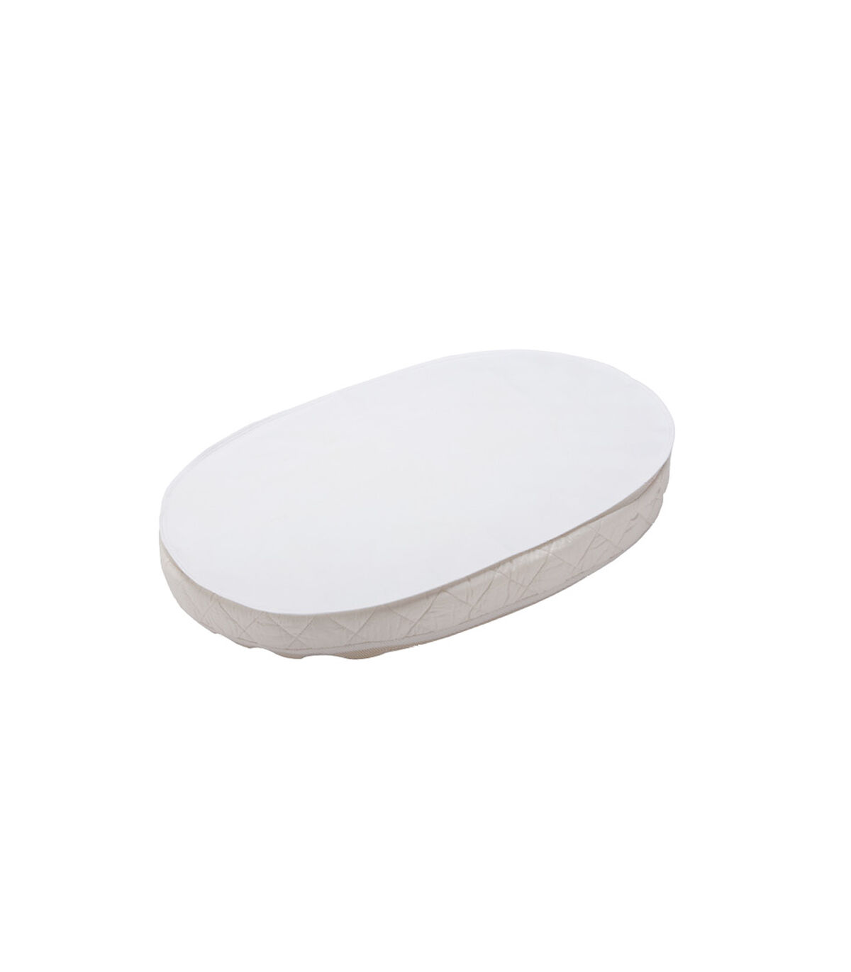 Ovaali patja Stokke Sleepi Mini V3 pinnasänkyyn. Hengittävä, myrkytön ja turvallinen patja vauvan pinnasänkyyn.
