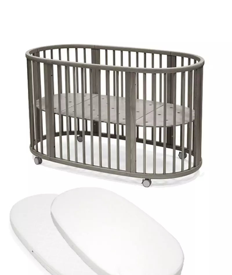 Ovaali patja Stokke Sleepi V3 pinnasänkyyn. Hengittävä, myrkytön ja turvallinen patja vauvan pinnasänkyyn.
