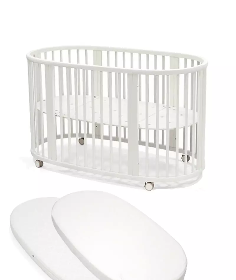Ovaali patja Stokke Sleepi V3 pinnasänkyyn. Hengittävä, myrkytön ja turvallinen patja vauvan pinnasänkyyn.