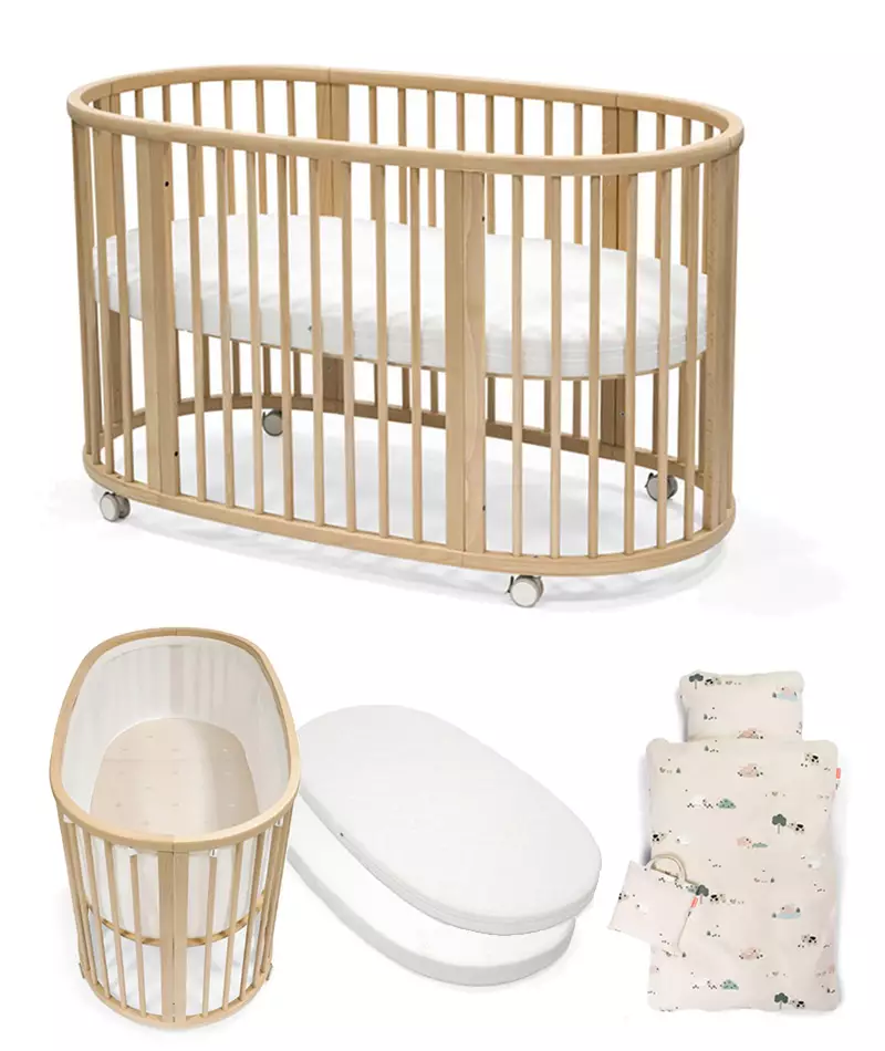 Stokke Sleepi V3 starttipaketti 6 in 1 Natural sisältää Stokken Sleepi V3 pinnasängyn tarvikkeineen. Kaunis ja kutsuva pinnasänky vauvanhuoneeseen.