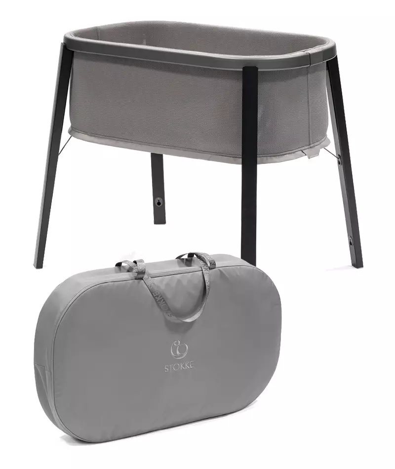 Stokke Snoozi sänky ja kuljetuslaukku Graphite Grey. Snoozi on uusi versio vauvan kehdosta, joka on ilmava ja kevyt, pehmeä ja soikea muodoltaan. Stokke Snoozi on vauvan ensisänky, joka sopii heti syntymästä alkaen. Siinä on kiinteä mukava patja ja sen hengittävät kankaat tekevät siitä turvallisen paikan vastasyntyneelle nukkua.