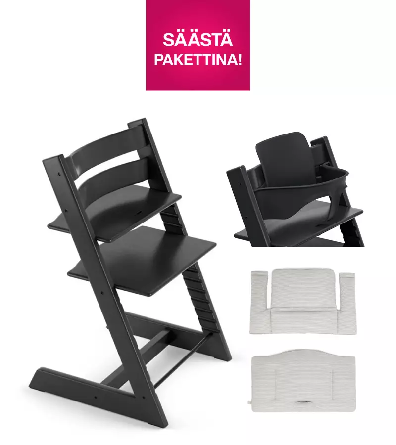 - Stokke Tripp Trapp syöttötuoli värissä Black - laadukas ja kestävä syöttötuoli, jossa lapsi voi istua vauvasta koululaiseksi saakka.